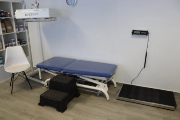 Weiterhin gehört eine Waage zur Gewichtskontrolle zur Praxisausstattung, um den Behandlungsverlauf zu überprüfen und Diätpläne zu optimieren.